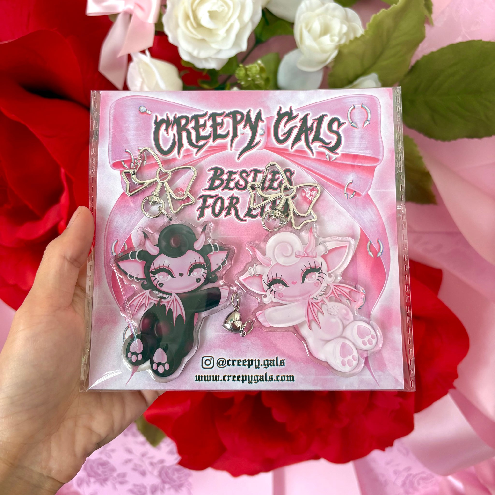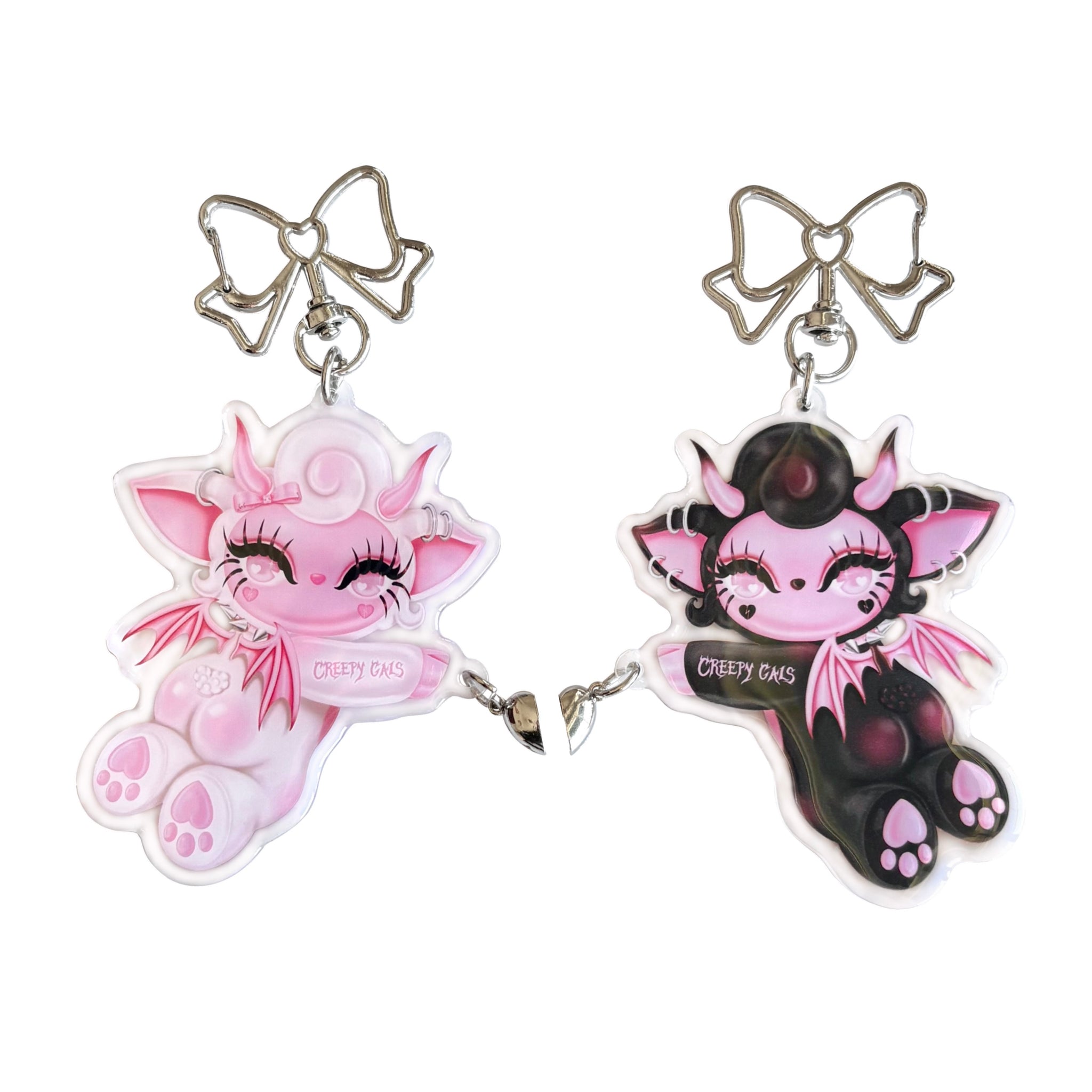 ♡ Features a bow key ring with a magnetic heart that connects the two keychains :')